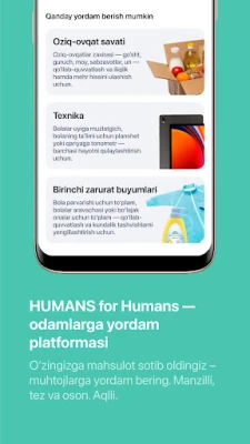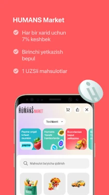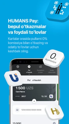 HUMANS ilovasi bilan komissiyasiz pul o'tkazish, har bir xariddan keshbek ishlab olish, boshqa joylardagi kabi mahsulotlarni, lekin arzonroq narxda xarid qilish va bepul aloqadan fodalanish mumkin.