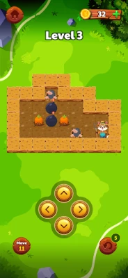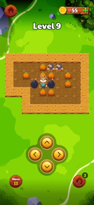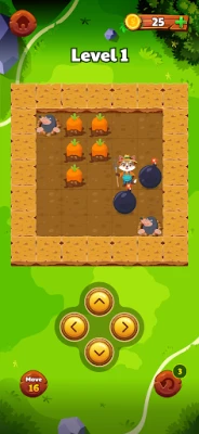 Welcome to "Mice In Farm" – a unique and addictive puzzle adventure that combines the strategic thinking of Sokoban (box-pushing) with the fast-paced action of whack-a-mole! Your mission? Help the Cat protect his precious carrot farm from mischievous moles who keep digging up and destroying his crops. To stop them, you’ll need to push bombs through obstacles and detonate them right at the moles’ tunnels before they ruin everything!