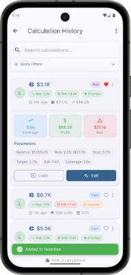 🗂️ Calculation History & Export – save, search, tag, favorite, and export past trade calculations.