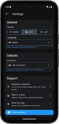 🌙 Dark Theme – system-aware dark mode with optimized contrast and AMOLED-friendly visuals.