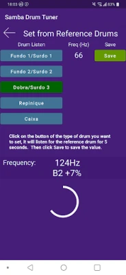This will listen to the frequencies from your phones' microphone and display them on the screen, allowing easy tuning of drums. It shows arrow buttons on whether to tune up or down.
