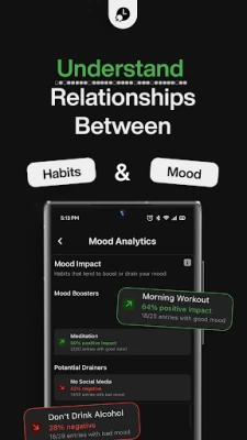 • Mood analytics to identify what drives your habits